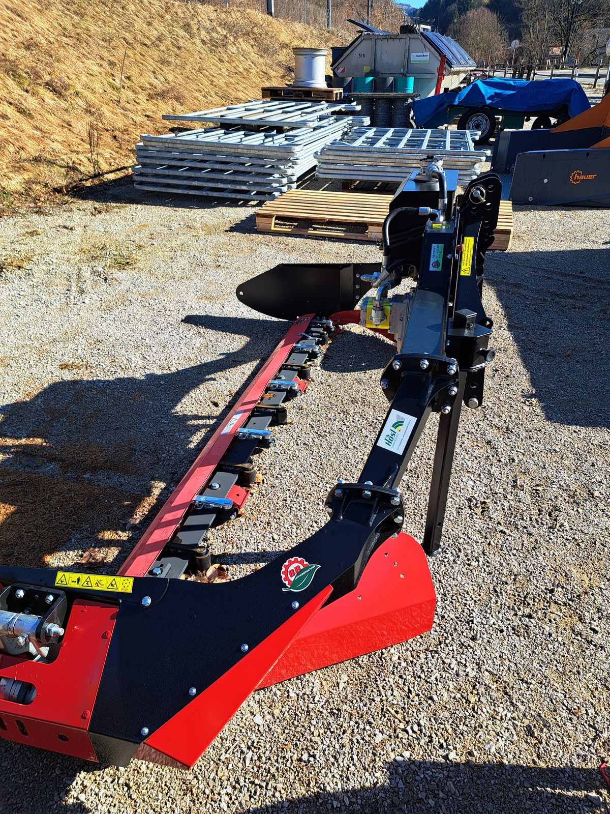Doppelmessermähwerk mit einer Arbeitsbreite von 2, 4 m, ( Transportbreite 2, 59m) mit eigener Ölversorgung, mit Dreipunktpendelbock Kat 1, Digitaldrehzahlmesser, Schw