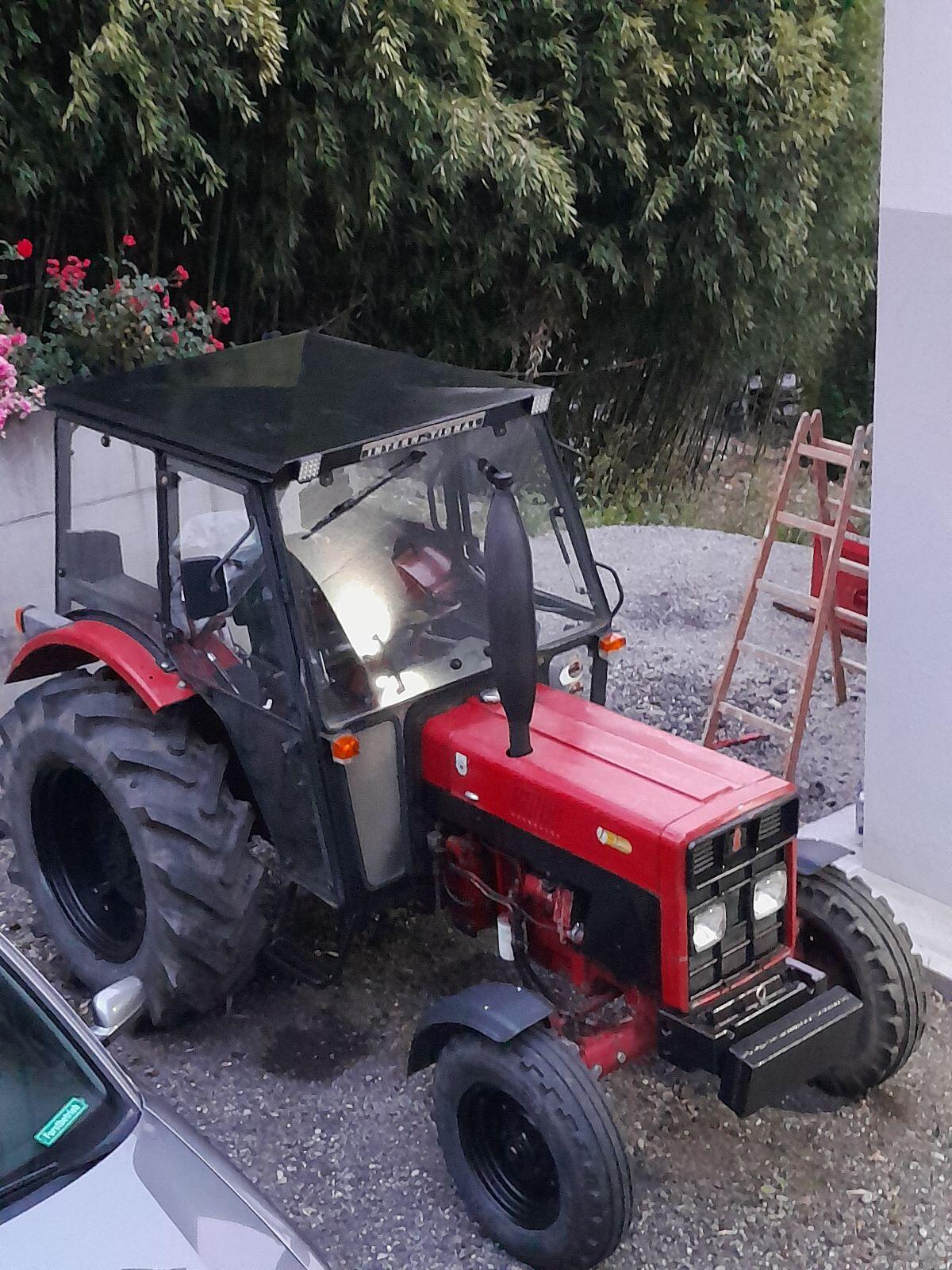 Beim Traktor: Typenschein vorhanden, 28 km/h. Wegen Bj. sind Bstd. ungewiss. Alle Flüssigkeiten, Öle mit Filter getauscht, el. Verkabelung, Starter, Lichtmaschine, T
