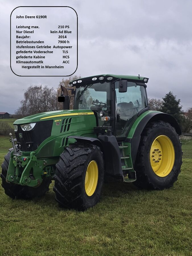 1 gebrauchter Allradtraktor im KUNDENAUFTRAG zu verkaufenHersteller: John Deere Modell: 6190R Baujahr: 2014 Betriebsstunden: 7900 h Seriennummer: 1L06190RCEP797