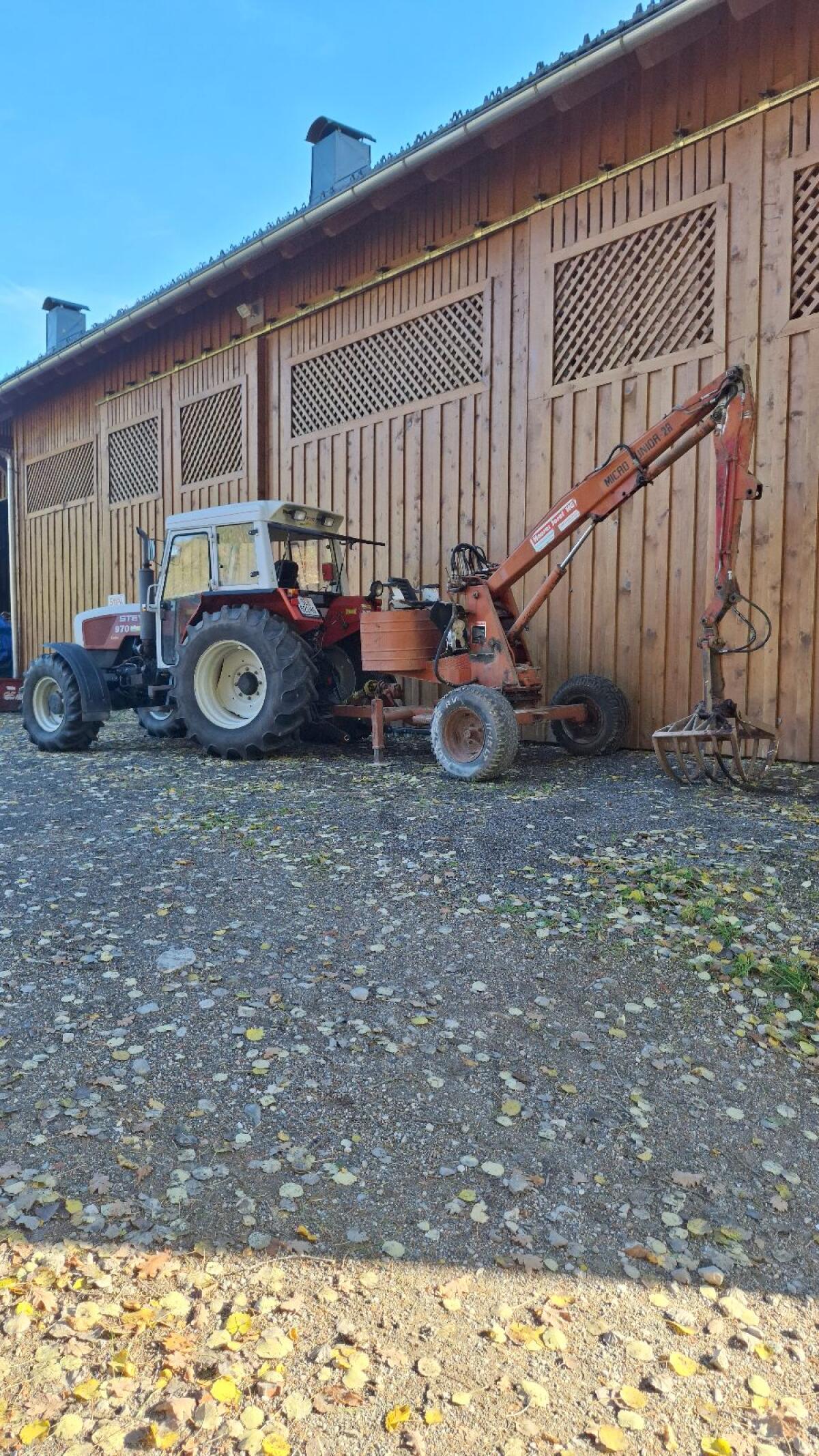 Heckbagger, gebraucht, aber soweit funktionsfähig mit Mistzange und Schaufel, siehe Foto. Ideal auch als Umbau für Holzzange. Traktorzubehör Heckbagger
