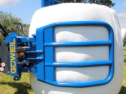 RBG 160 – Rundballen-Greifer Grundrahmen mit groß dimensionierten, gerundeten Greifarmen mit Schwenkausgleich, Hydraulikzylinder für BallenfixierungBallendurc