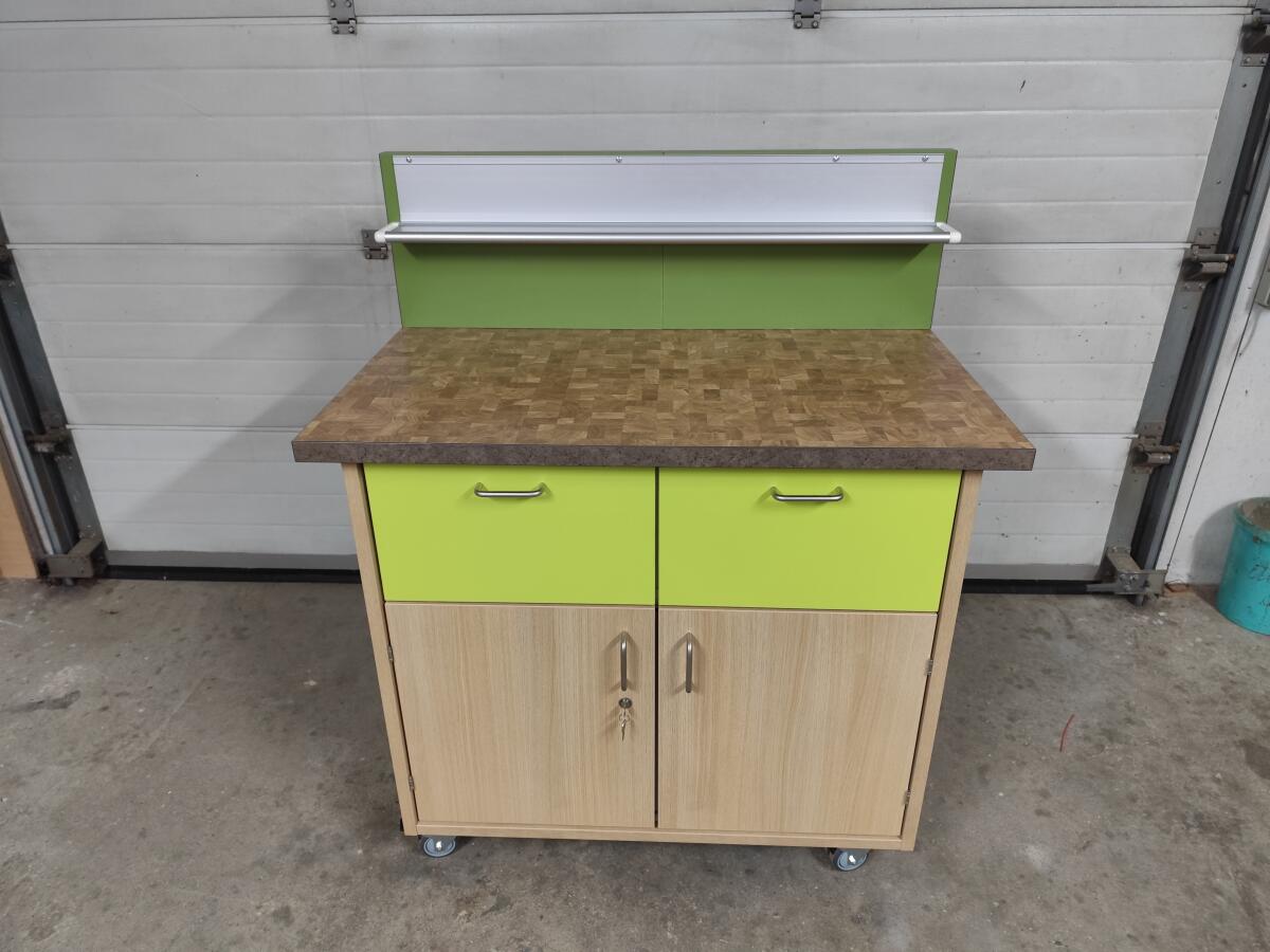 Verkaufe einen fahrbaren Werkzeugschrank. Oben sind zwei Laden mit Vollauszug und Softeinzug und darunter zwei Drehtüren, sperrbar mit einem Fachboden dahinter. Der