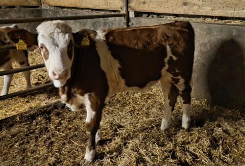 Name: Gerry, Geb: 23.02.2025, Bio Fleckvieh, Weidehaltung. Rindermarkt Fleckvieh Mutterkühe