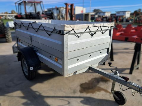 Nr. 70798PKW-Anhänger- mit Lademaß: 2.050x1.220x390mm- mit Planenknöpfe montiert- mit V-Deichsel- mit Holzboden - mit Stützrad- mit Einzelachse ungeb