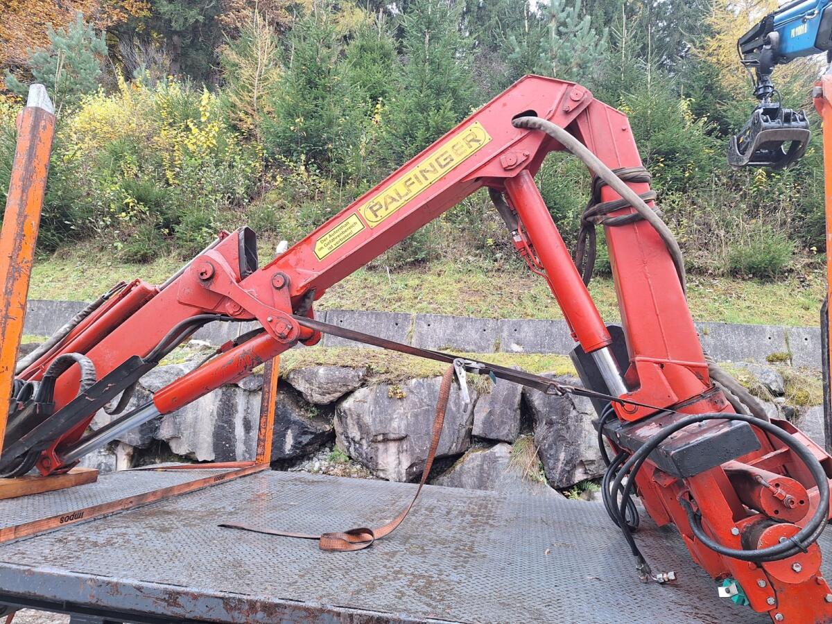 Verkaufe (Holz)-Kran Palfinger PK-9700, sehr guter Zustand, 3× hydr. Ausschub, 1× mechanisch, Rotator und Greiferleitung vorhanden, Stützfüße seitlich hydr. ausfahrb