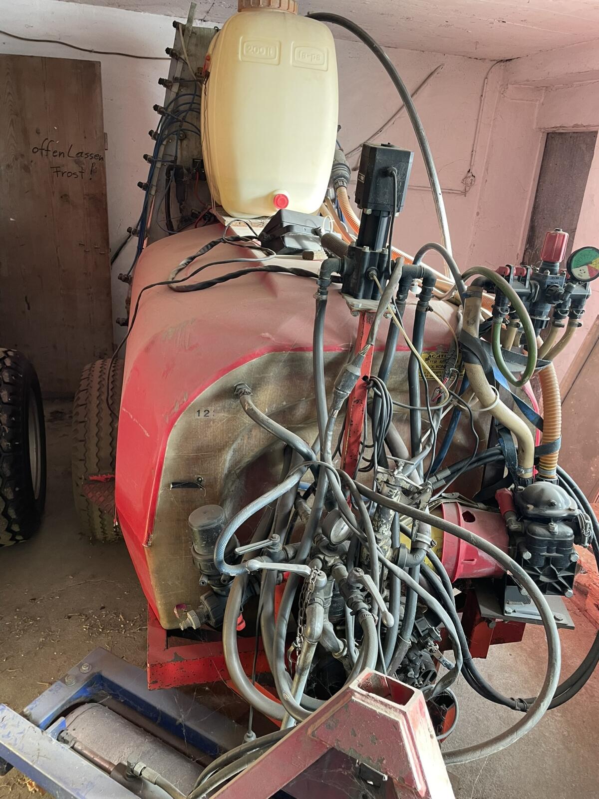 Zu verkaufen steht eine Sorarui 1.500 l Spritze, Merkmale: Großer Turm, 90 Flügel, elektrische Ventile, 2 Kreise, 2. Tank mit 200 l, Arag Steuerung, LED-Rücklichter.