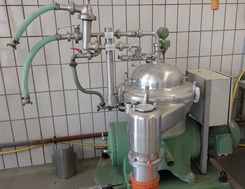 Verkaufe wegen Betriebsaufgabe Zentrifuge für Saft oder Ähnliches, Leistung ca. 2.000-3.500 l, voll funktionstüchtig, gebrauchter guter Zustand. Selbstentleerung. Pr