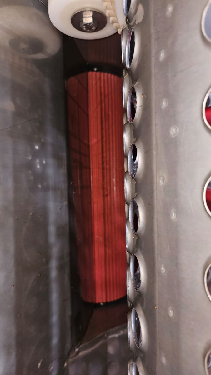 Daten: - gebraucht - Variator - Edelstahlkorb - Abbeerfinger aus Gummi - Quetsche - Übernahmetrichter für Großkisten - Auffangwanne mit Schnecke für Impellerp