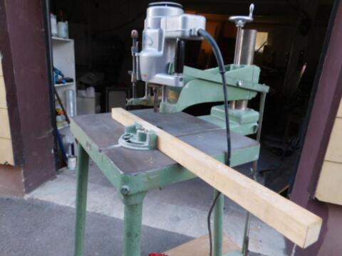 Tischoberfräse mit Anschlag, 1.800 Watt, Ausladung ca. 34 cm, mit etwas Werkzeug, mit Anlaufzapfen im Tisch, kann auch unter dem Tisch montiert werden, Eintauchen be